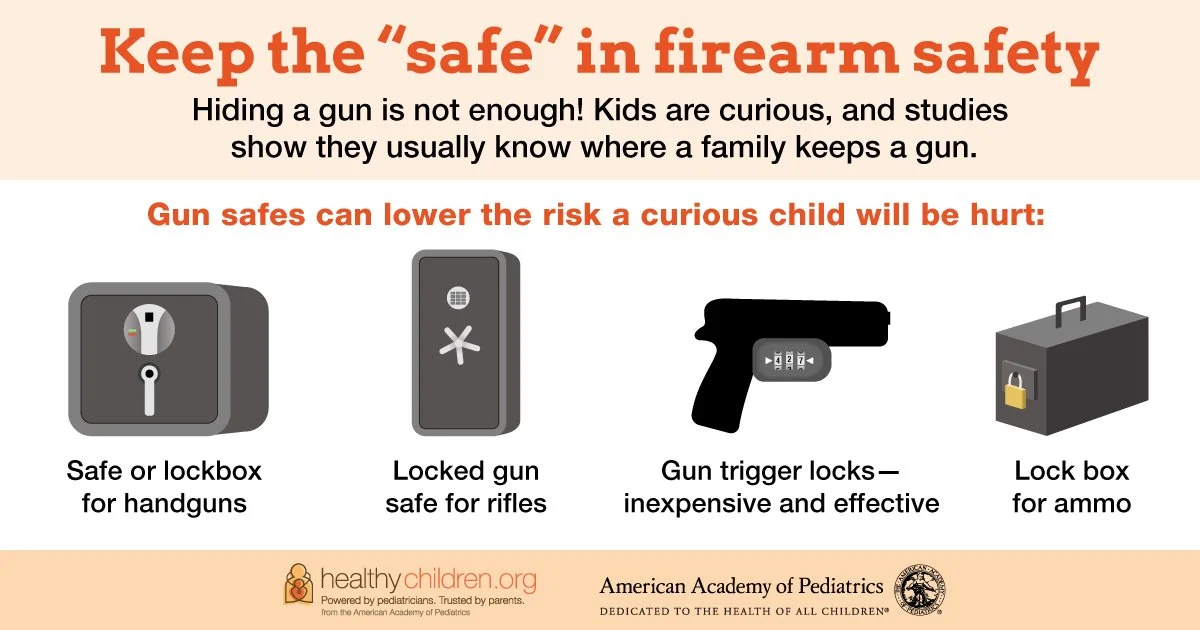 Keeping guns unloaded and locked up prevents unauthorized users, including children, from accessing and then being injured by firearms. You may practice secure storage at home, but other parents may not, and your children could be at risk in their home.